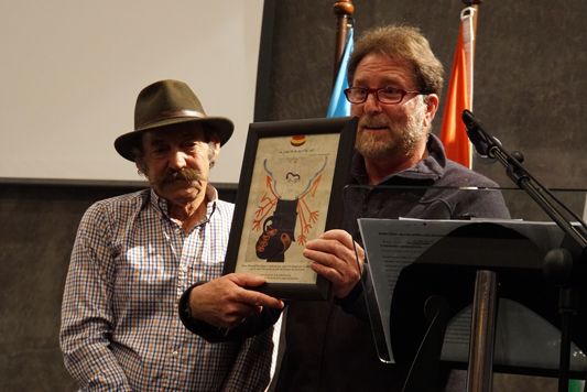 Vino luego el momento del homenaje en sí. Al hacer entrega de la ilustración a José Ortega, Andrés Rebolledo afirmó: “Tú historia ya la hemos escuchado aquí, José. Poco más puedo añadir. Solo que muchas gracias por no haberte rendido nunca y por seguir en la pelea por un mundo mejor”.